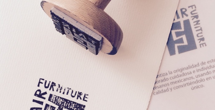Etiqueta personalizada para los productos de Fair Furniture. Fair Furniture es una marca holandesa de diseño y producción de muebles hechos a mano desde México.