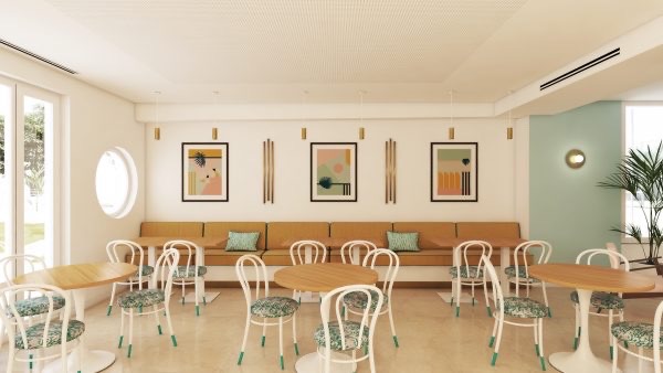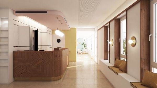 Interior design Project, Hostal Las Cumbres INFO Interior Design Project. Mid Century. Miami. Art Déco DATE July 2018 CLIENT Hostal Las Cumbres SERVICE 3D design. Interior Design. Product Design. Experience Design IN COLLABORATION WITH Carlos López . triptika.es INFOGRAFÍAS